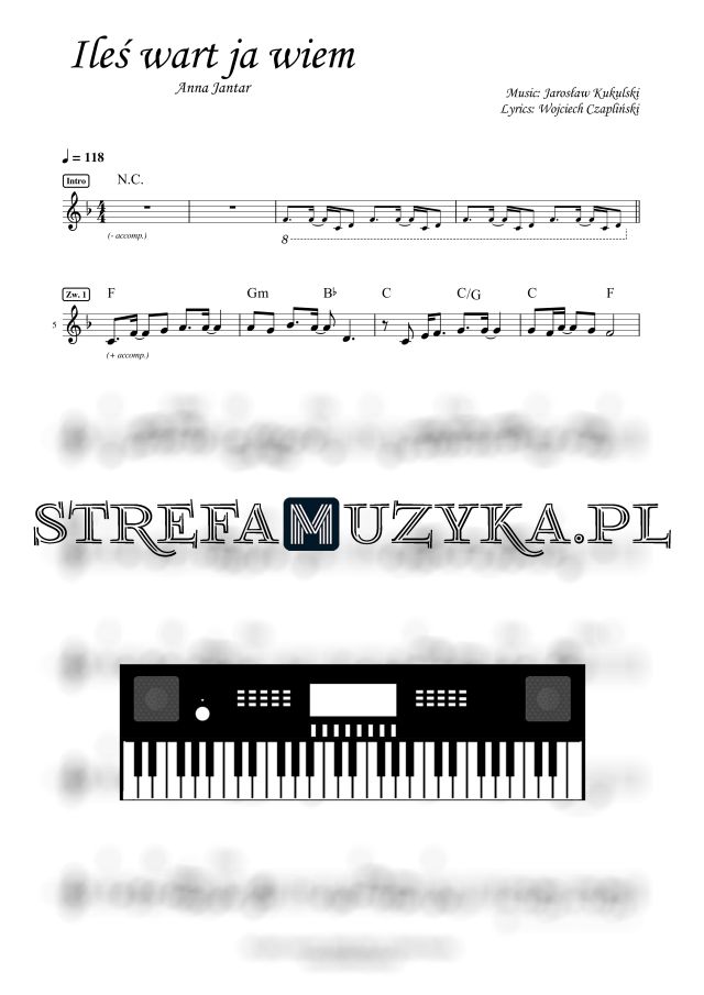 * Nuty do tego utworu (Ileś wart ja wiem – Anna Jantar) są przeznaczone zarówno dla osób grających na keyboardzie (ze styli), jak również dla Muzyków tworzących samodzielny akompaniament lewej ręki na fortepianie.