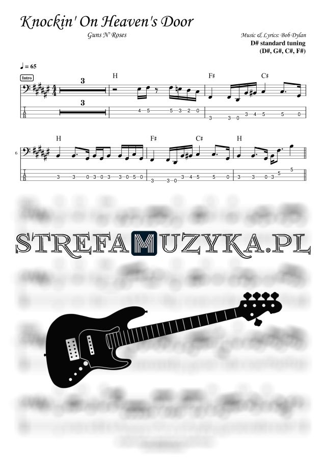 *Wersja na Gitarę Basową Czterostrunową jest opracowana w stroju D# standard – D#, G#, C#, F#
