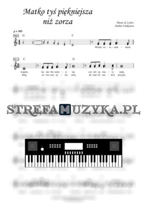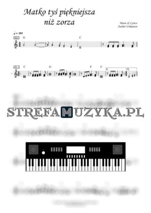 * Nuty do tego utworu (Matko tyś piękniejsza niż zorza) są przeznaczone zarówno dla osób grających na keyboardzie (ze styli), jak również dla Muzyków tworzących samodzielny akompaniament lewej ręki na fortepianie.