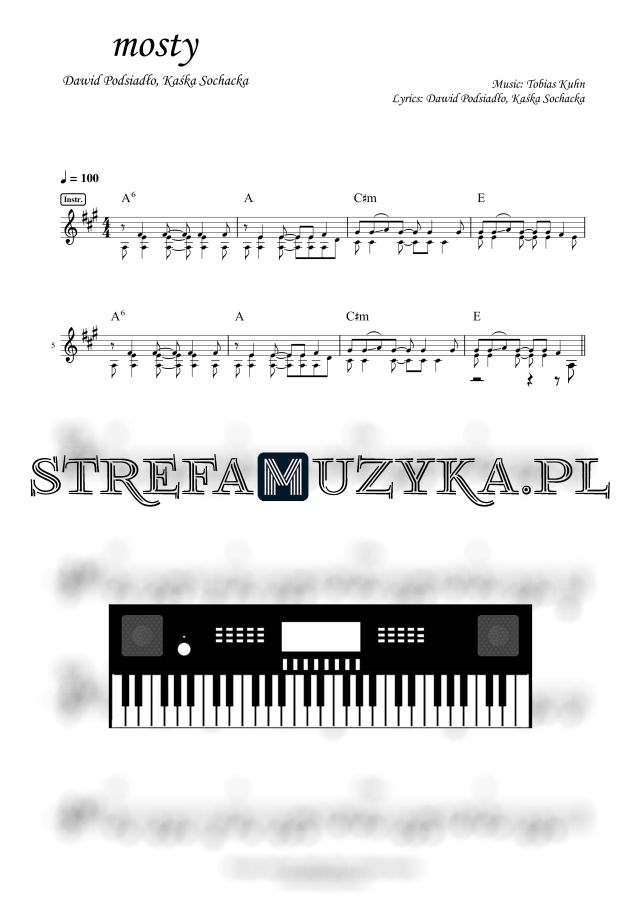 * Nuty do tego utworu (mosty – Dawid Podsiadło, Kaśka Sochacka) są przeznaczone zarówno dla osób grających na keyboardzie (ze styli), jak również dla Muzyków tworzących samodzielny akompaniament lewej ręki na fortepianie.