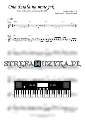 * Nuty do tego utworu (Ona działa na mnie jak – Piękni i Młodzi Dawid Narożny & AGBE) są przeznaczone zarówno dla osób grających na keyboardzie (ze styli), jak również dla Muzyków tworzących samodzielny akompaniament lewej ręki na fortepianie.